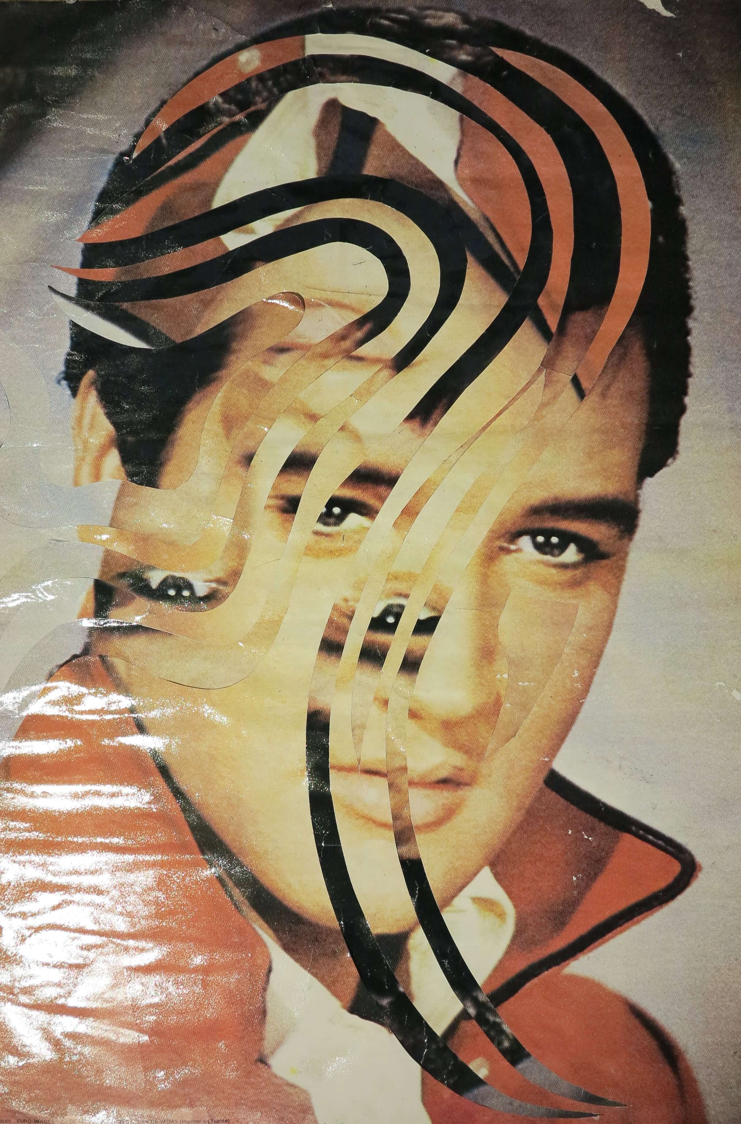 80 x 60 cmDécoupe au scalpel & collages d'anciennes affiches d'imprimerie française, d'Elvis Presley