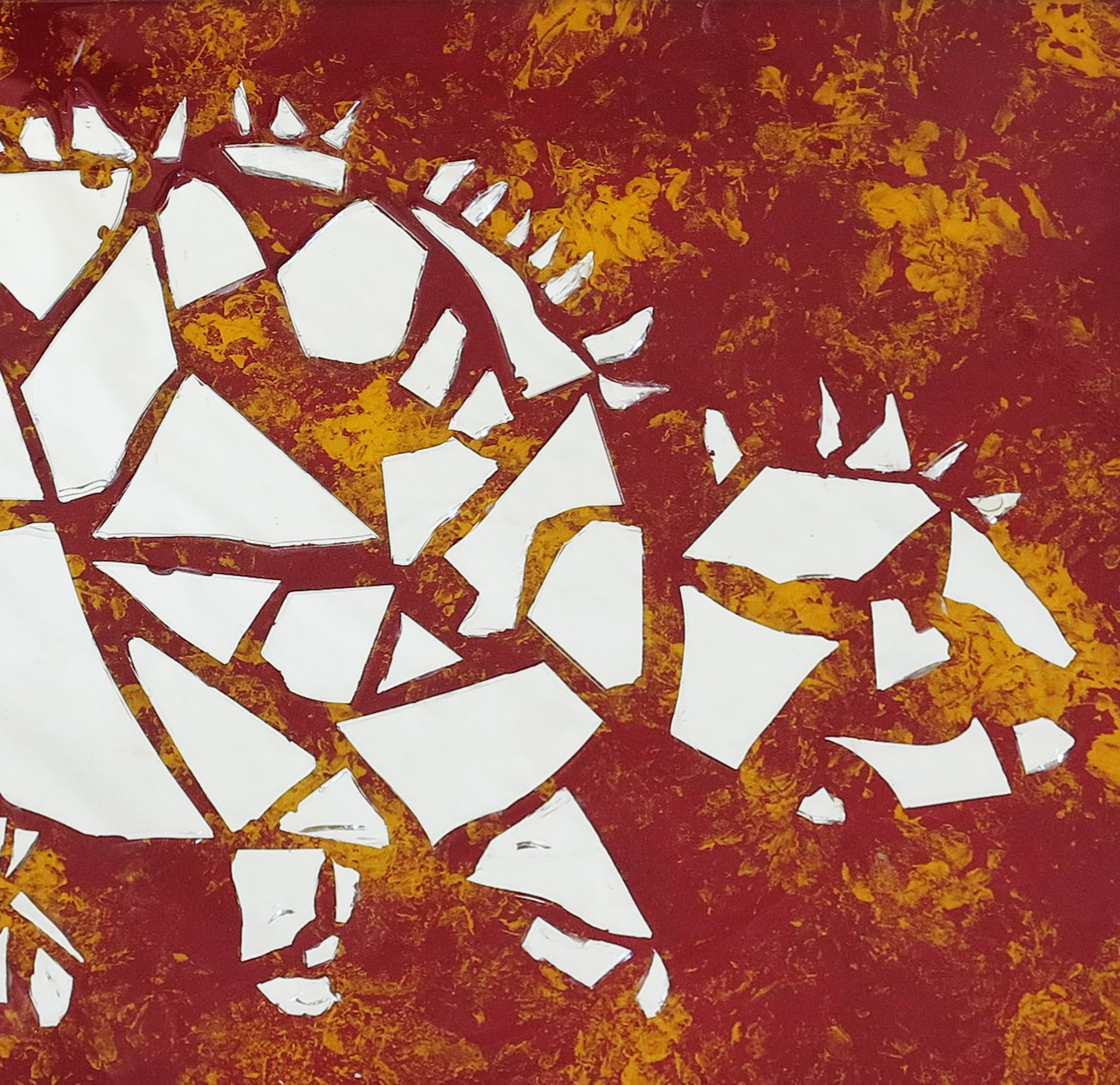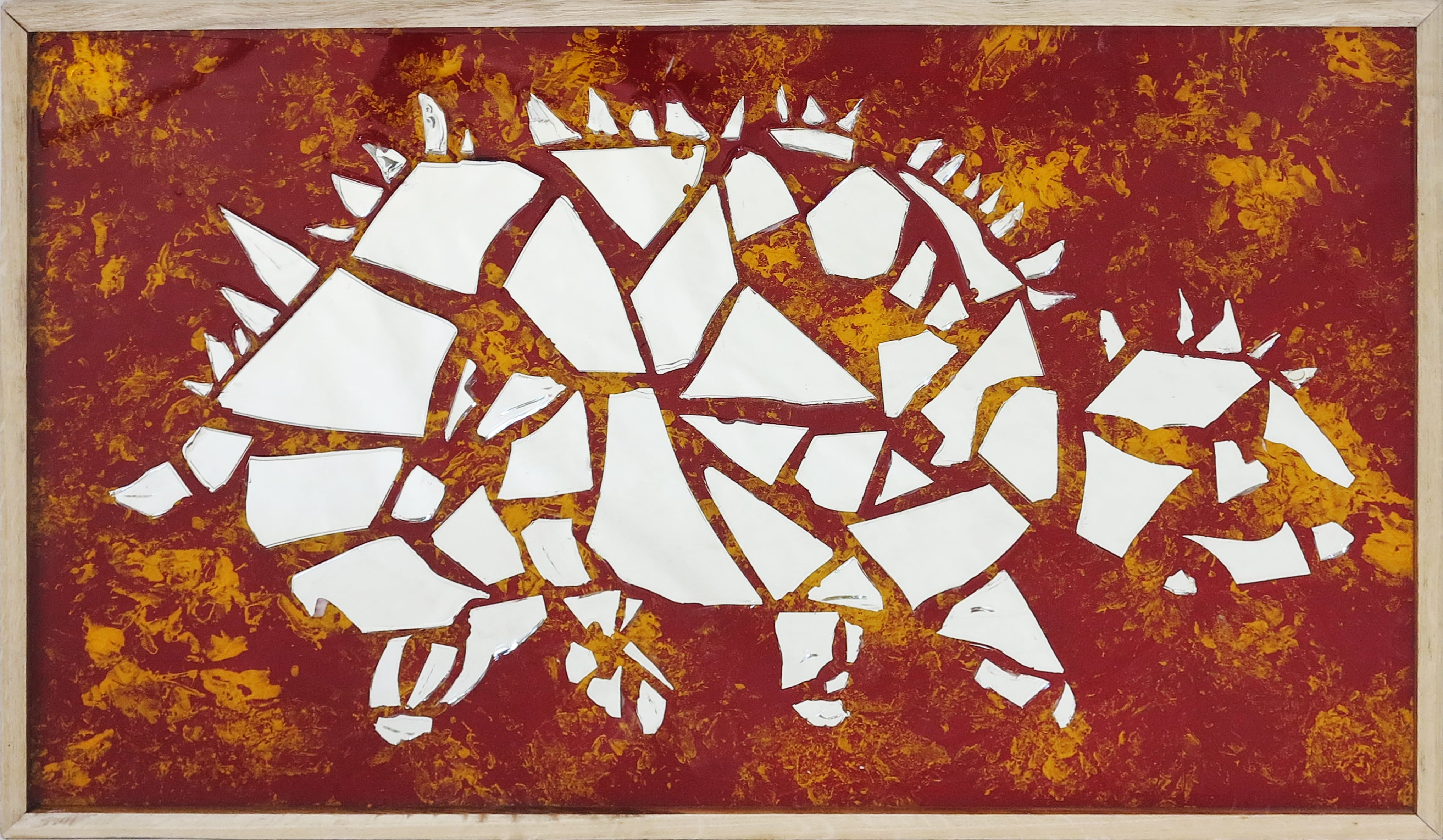"La Tortue Punk "🐢60 x 130 cmMosaïque de miroir, joint résine. Cadre en chêne.#tortues #mirror #mosaicmirror #créatures #collectionmiroirs #artmiroir #MiroirCassé #creativedestruction #couleurs #rougejaune #résine