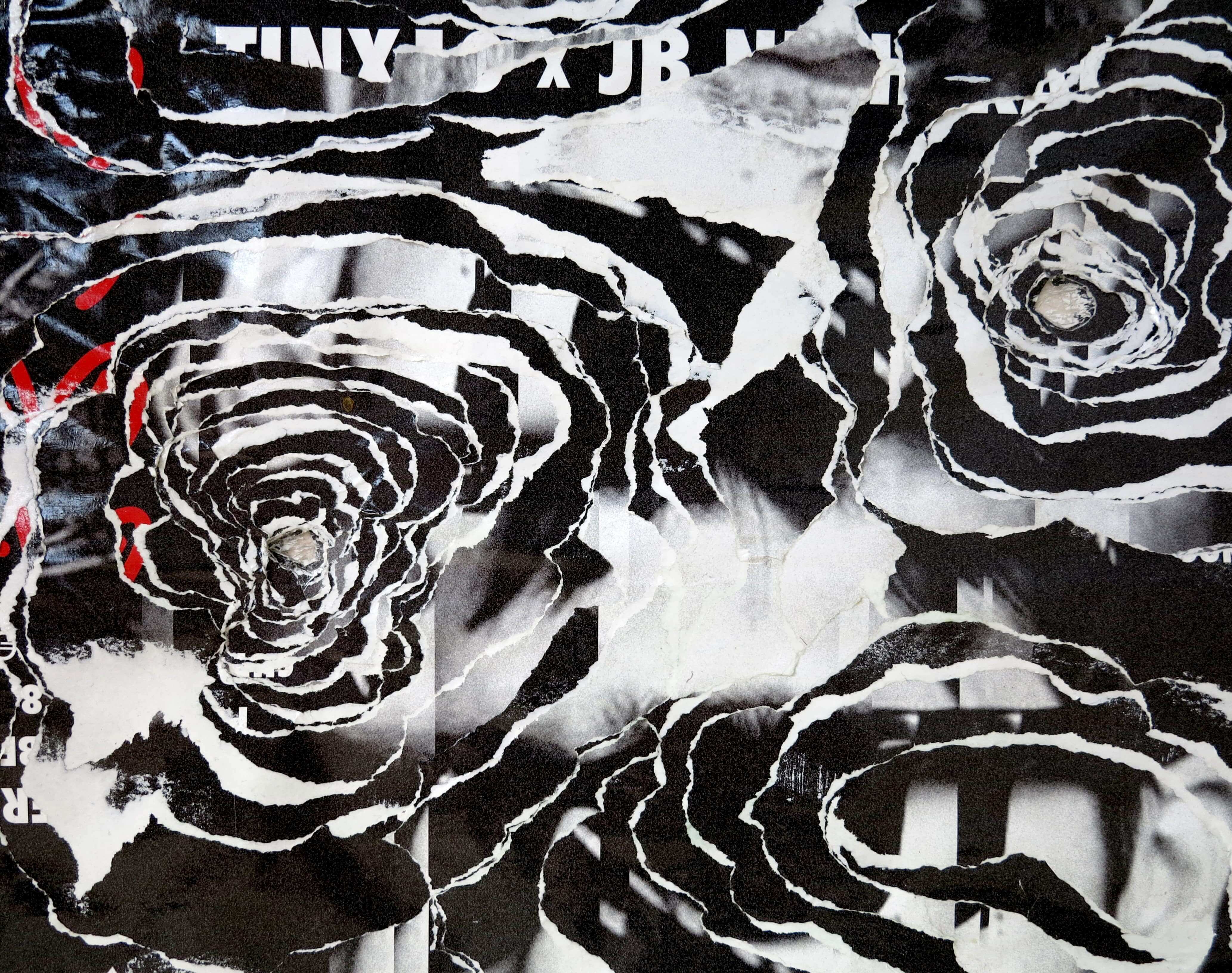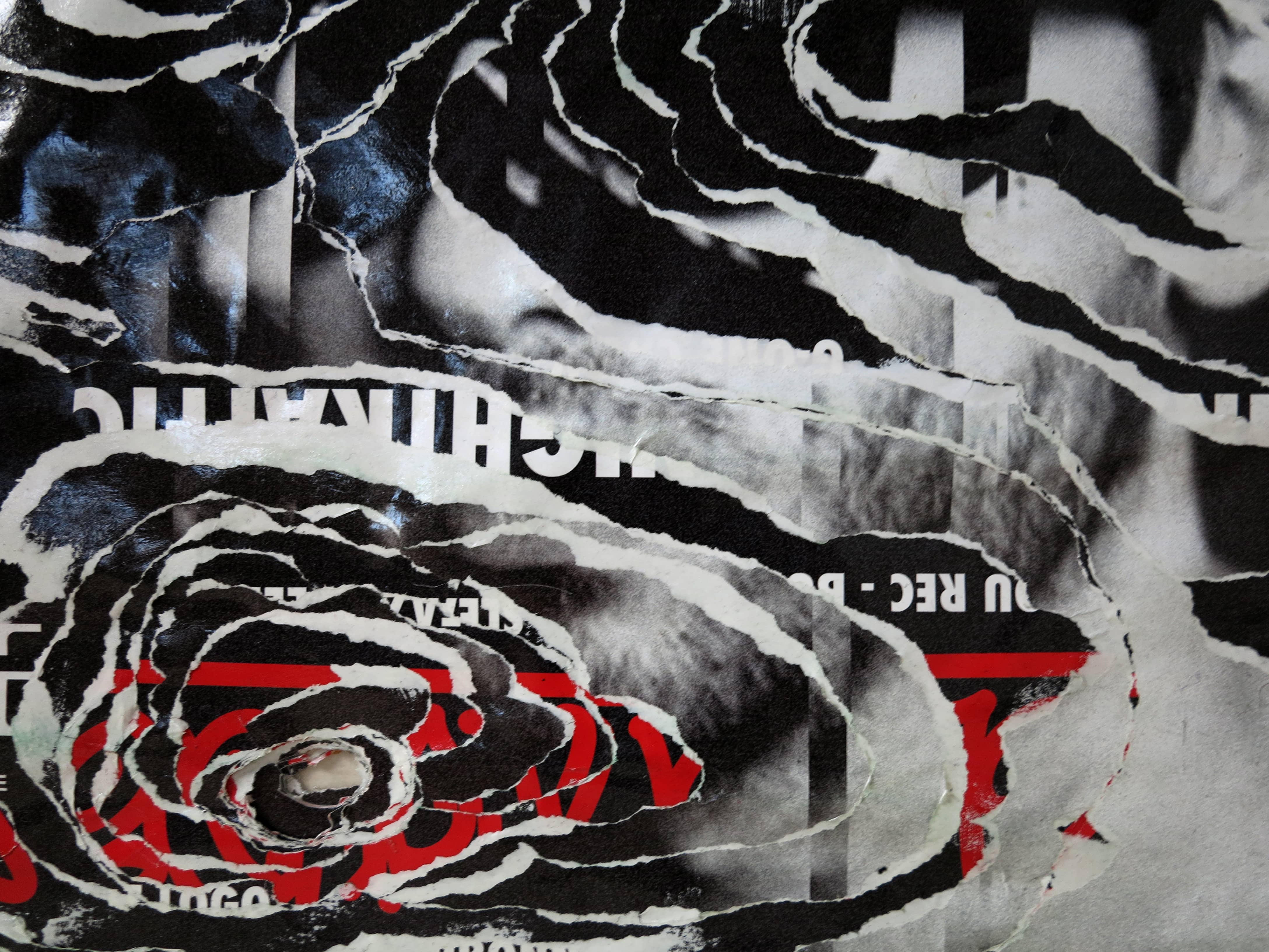 Affiches superposées déchirées, marouflées sur toile, finition vernis.